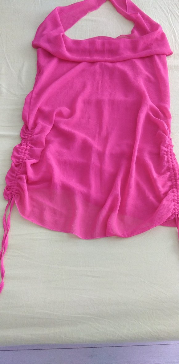 Pembe Drapeli İp Askılı plaj havuz elbisesi