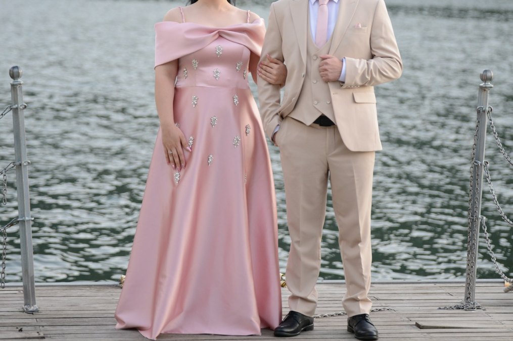 Pembe renkli, drapeli detaylara ve işlemelere sahip, uzun ve vücuda oturan bu nişan elbisesi, tekne yaka ve ince askılarla modern klasik bir görünüm sunar. Nişanımda giydim daha yeni alınmıştır zaten. 46 beden aldım fakat kendime göre yaptırdım. 44 bedene tam oturur. Kuru temizleme gerekebilir. pazarlık vardır