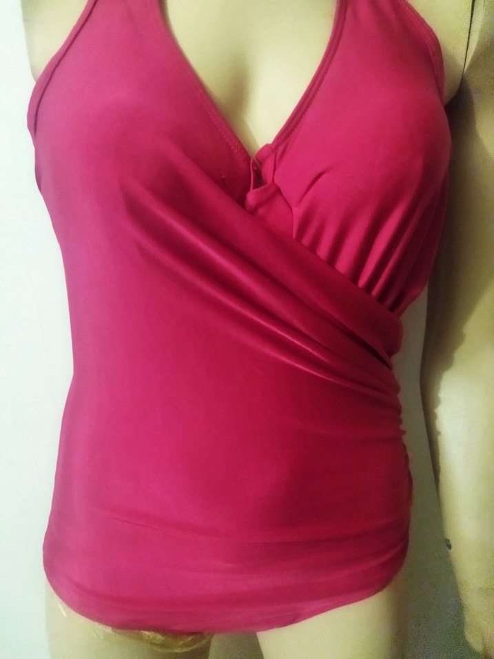 Kolsuz, pembe renkli bu mayo, drapeli tasarımı ve vücuda oturan midi boy kesimiyle minimalist ve çağdaş bir stil sunar. Günlük kullanıma uygundur.