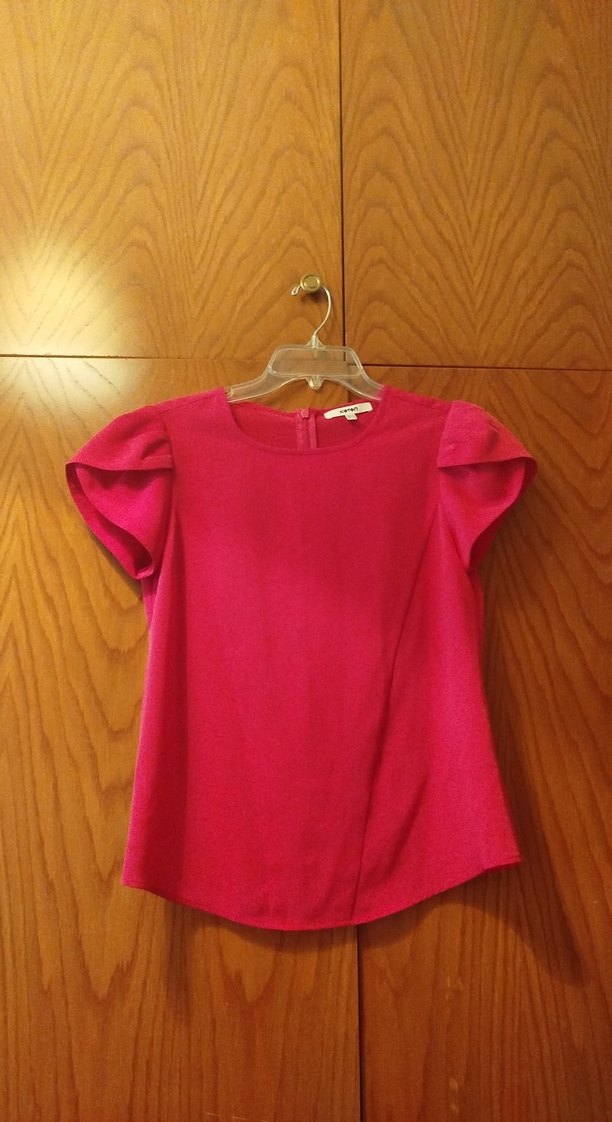 Pembe renkli, kısa kollu, yuvarlak yakalı, bol kesim ve drapeli tasarıma sahip kadın bluz. Ofis kullanımı için uygun, ipeksi dokulu kumaştan yapılmıştır.