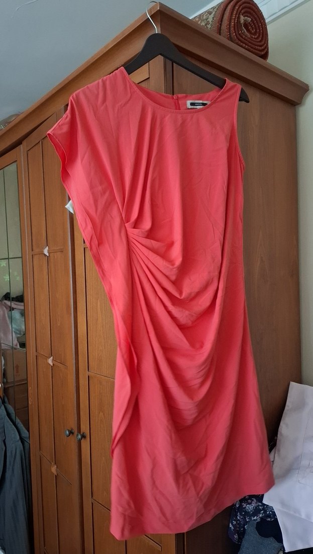 Pembe Drapeli Midi Abiye Elbise