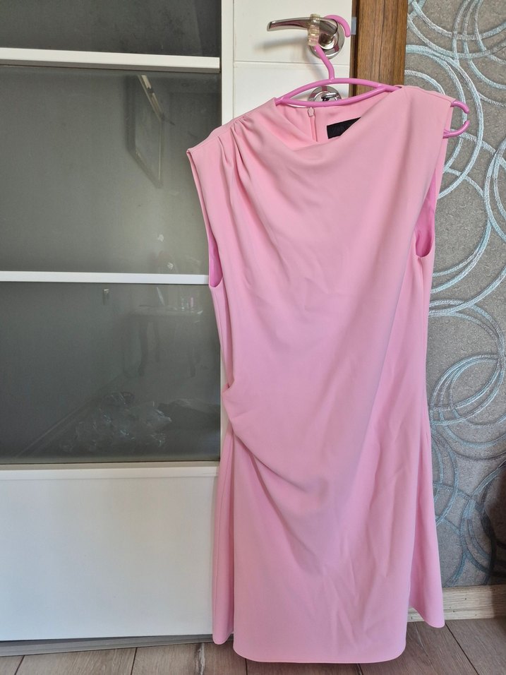 Pembe, drapeli, yüksek yakalı ve kolsuz, vücuda oturan mini elbise zara marka orijinal.. 1 kere giyildi