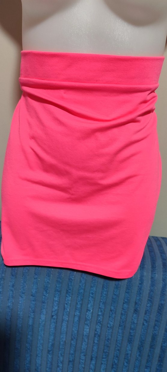 Pembe renkte, drapeli ve midi boyda, vücuda oturan eteği. Yumuşak sentetik kumaştan üretilmiş, günlük kullanıma uygun cesur ve renkli tasarım.