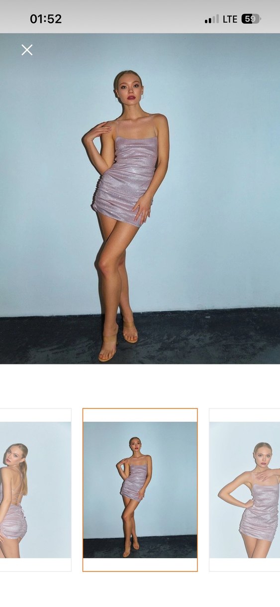 Bu pembe pastel renkli mini elbise, straplez yaka ve askılı kollarıyla drapeli, fit kesimiyle gösterişli bir parti stiline uygundur.