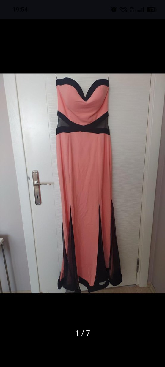 Bu pembe drapeli, straplez uzun abiye elbise, dar kesimi ve çağdaş tasarımıyla parti için uygundur. Kolsuz ve şık bir görünüme sahiptir.