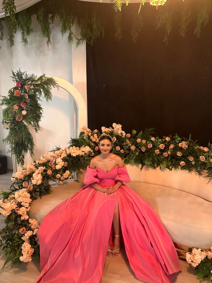 Pembe renkli, straplez yakalı ve drapeli uzun abiye elbise. Renkli desenlere sahip, bol kesim ve askılı kollu, gösterişli düğünler için uygun. Kınam da kullanmıştı yalnızca Ürün yeni olup sadece bir defa kullanılmıştır