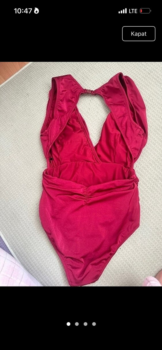 Fıt kesim, koyu pembe renkte, drapeli detaylı ve askılı kol tasarımlı kadın mayosu, plajda bohem tarz için uygun.