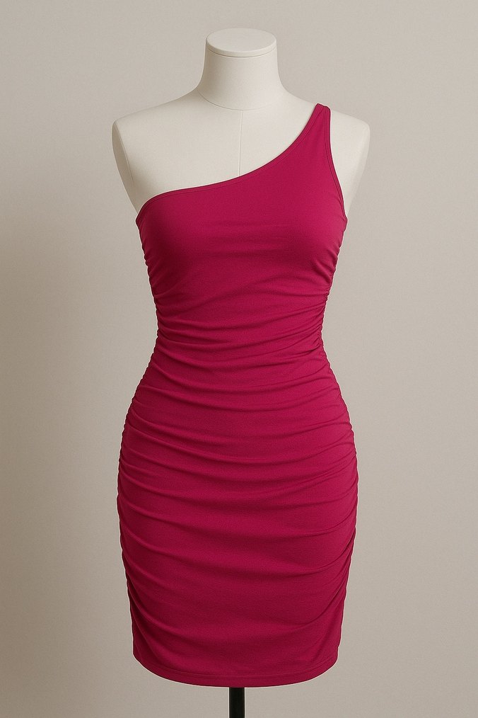 Pembe Drapeli Tek Omuzlu Mini Abiye Elbise