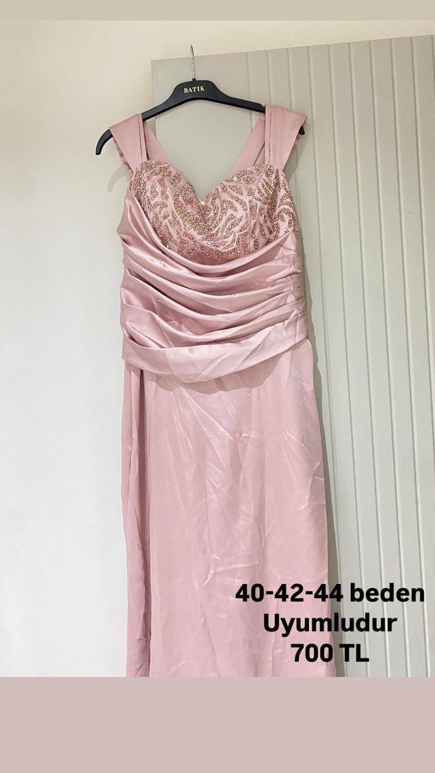 , pembe parlak kumaştan uzun abiye elbise. 40-44 beden uyumludur, düğün ve özel günler için uygundur. kalın askılı