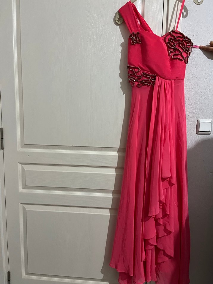 Pembe Drapeli Uzun Abiye Elbise