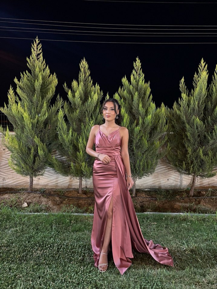 Parlak pembe renkte, drapeli ve vücuda oturan kesime sahip uzun abiye elbise. Straplez yaka ve ince askılı, düğünler için uygun, bohem ve gösterişli tarzda. 1 defa kullandım hiçbir sıkıntısı yok. Teklife açığım
