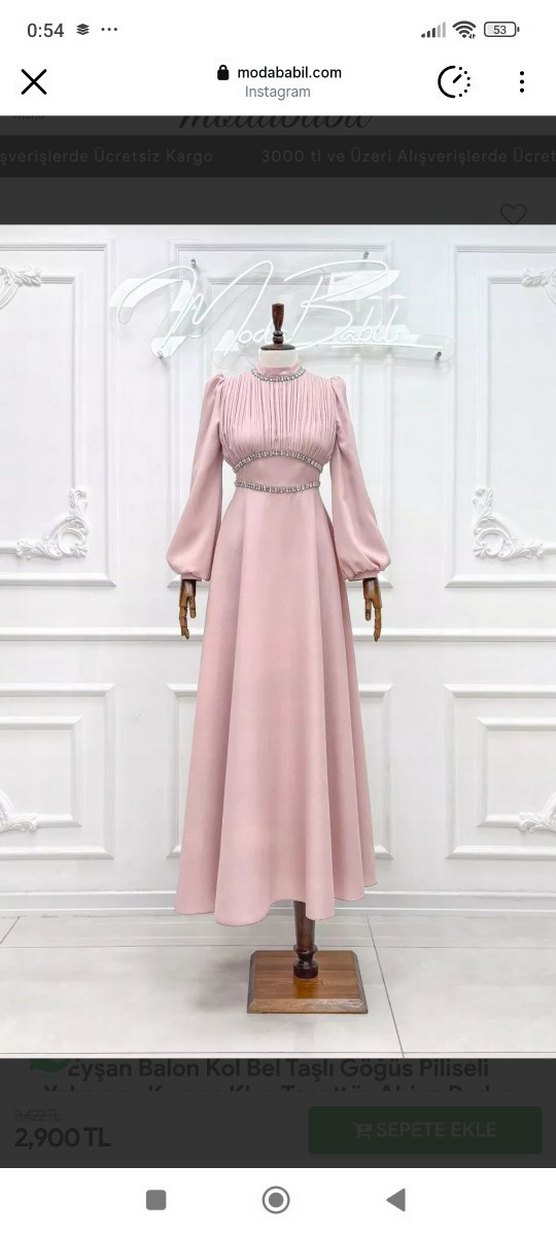 Bir defa kullanılmistir. Şalı dahildir. Pembe renkte, yüksek yakalı ve uzun drapeli kollu, nakış detaylı abiye elbise. aşırı kaliteli kumaşı vardır. kalıp gibi üzerinizde çok şık duruyor. Düğünler için modern ve uygundur.