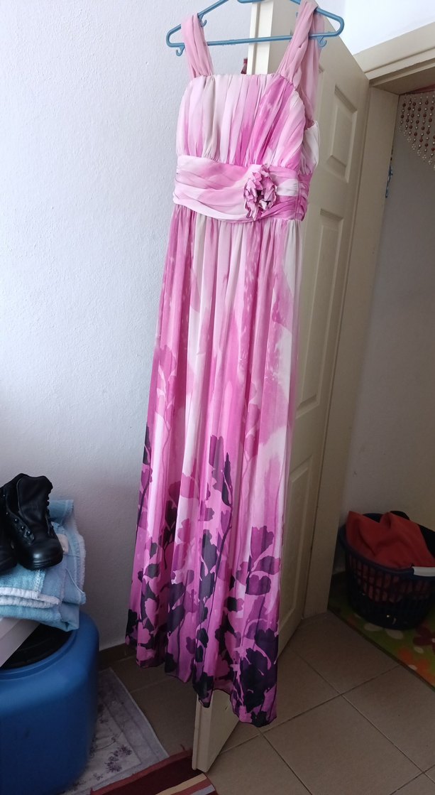 Pembe Drapeli Uzun Elbise