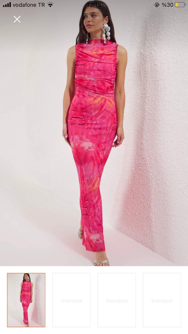 Pembe Drapeli Uzun Kadın Elbise - Görsel 4