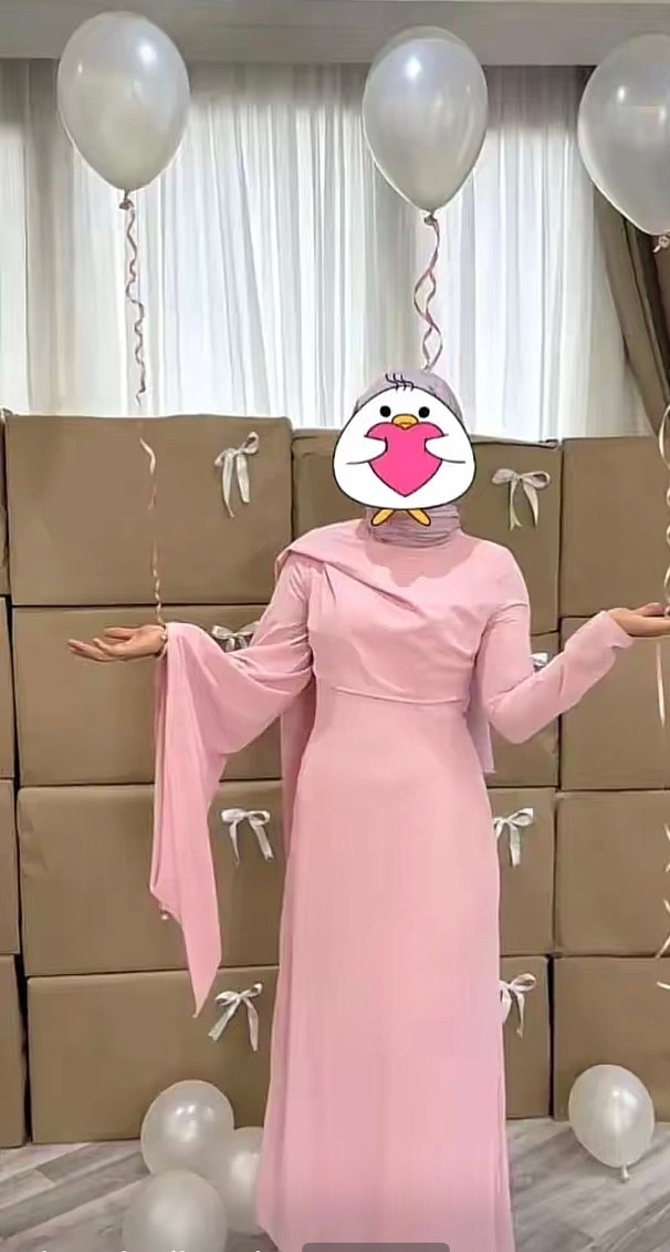 Pembe Drapeli Uzun Kollu Kadın Abiye Elbise