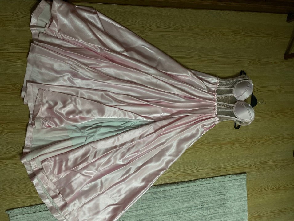 Pembe Drapeli Uzun Straplez Kadın Abiye