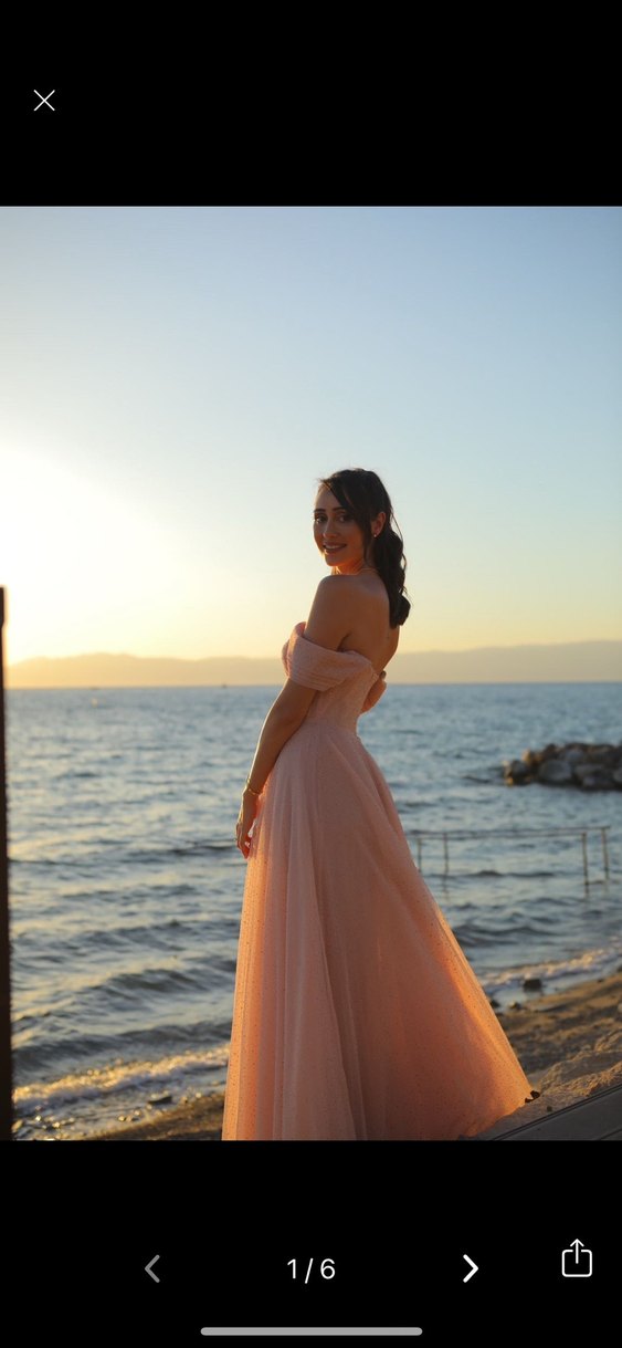 Pembe, straplez uzun abiye elbise, drapeli tasarıma ve bol kesime sahip. İnce askılı kollu ve bohem tarzıyla, gösterişli düğünler için ideal.