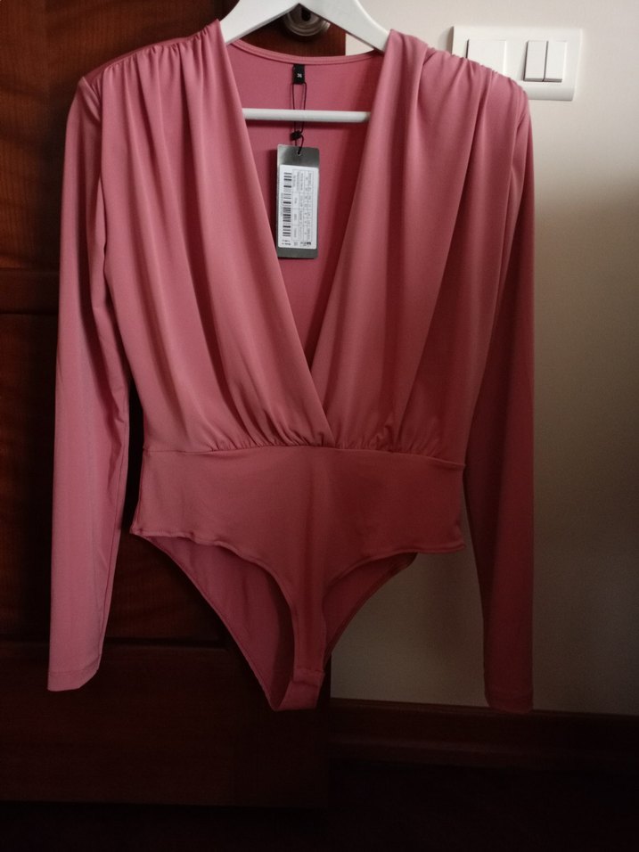 Modern ve zarif tasarımlı, derin V yaka, uzun kollu ve belden oturan kesimiyle vücudu güzel saran bir body. Omuzları vatkalı. Alt kısmı çıtçıtlı. Esnek kumaşı sayesinde oldukça rahat ve formu düzgün. Şık kombinlerde tek başına yıldız parça olur, vakaları sayesinde omuzları fik gösterir. Hem günlük hem akşam şıklığına uyumlu. • Beden: 36 • Renk: Gül kurusu/pembe