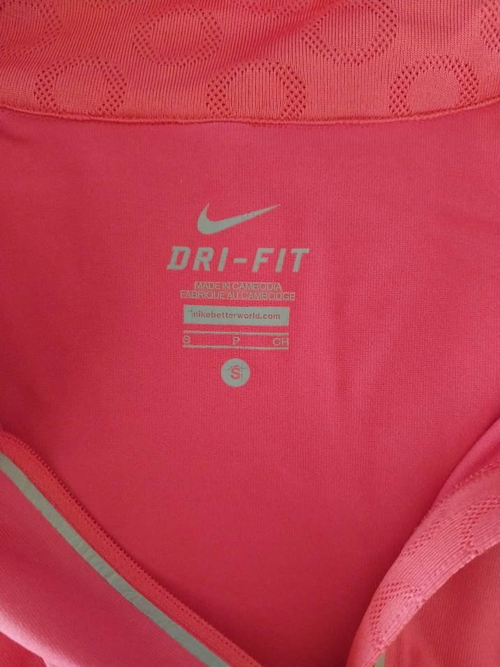 Kadınlar için pembe, parlak renkli, baskılı ve DRI-FIT teknolojili spor elbisesi. Kolsuz, midi boy, sentetik kumaş ve fermuarlı detay içerir. ♀️