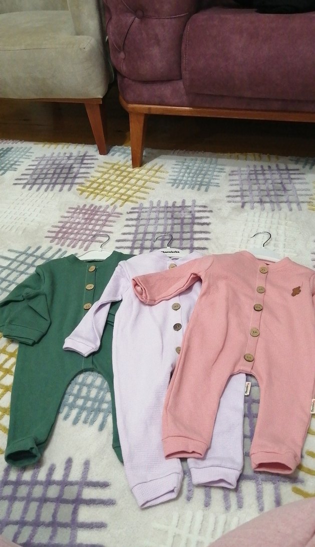Yumuşak pembe renkte, düğmeli ve uzun kollu bebek kız tulumu. Desensiz sade tasarımıyla rahatlık sağlar. hepsi sıfır 9,12 ay tulumlar yeşil olan şapkalı diğerlerinde şapka yok tane 150 tl