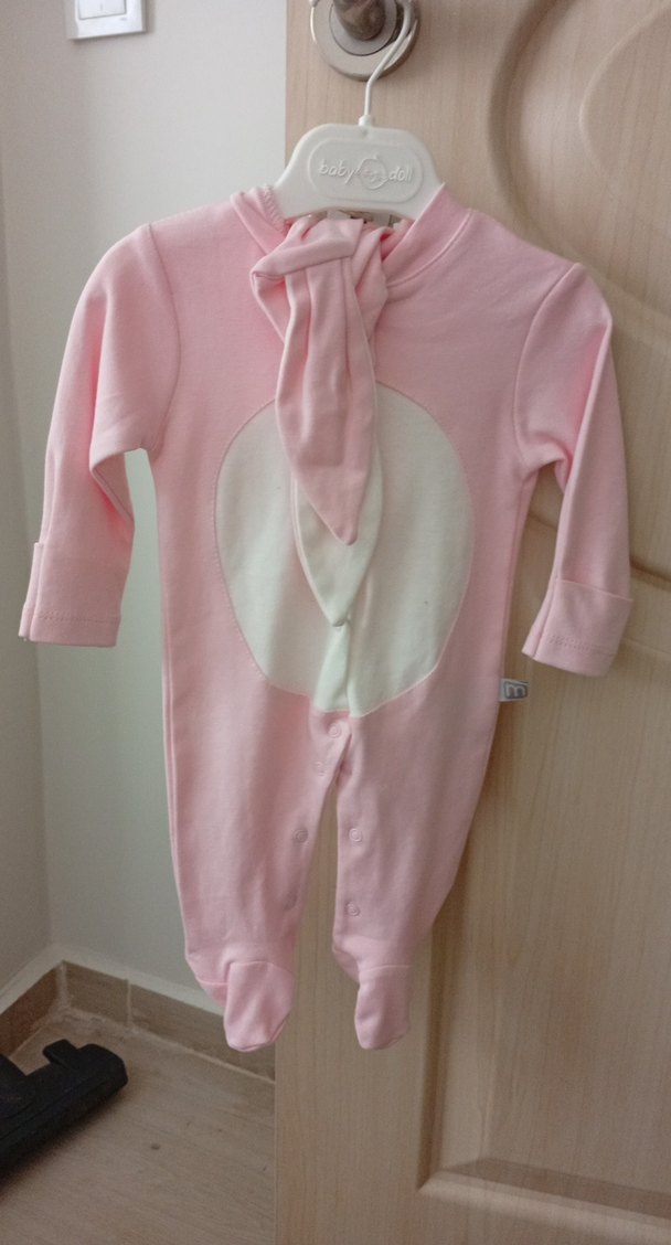 Pastel pembe renkli, düğmeli ve yumuşak kumaşlı bebek kız tulumu. Basit tasarımlı ve atkı detaylıdır, bebeğinizi sıcak tutar.
