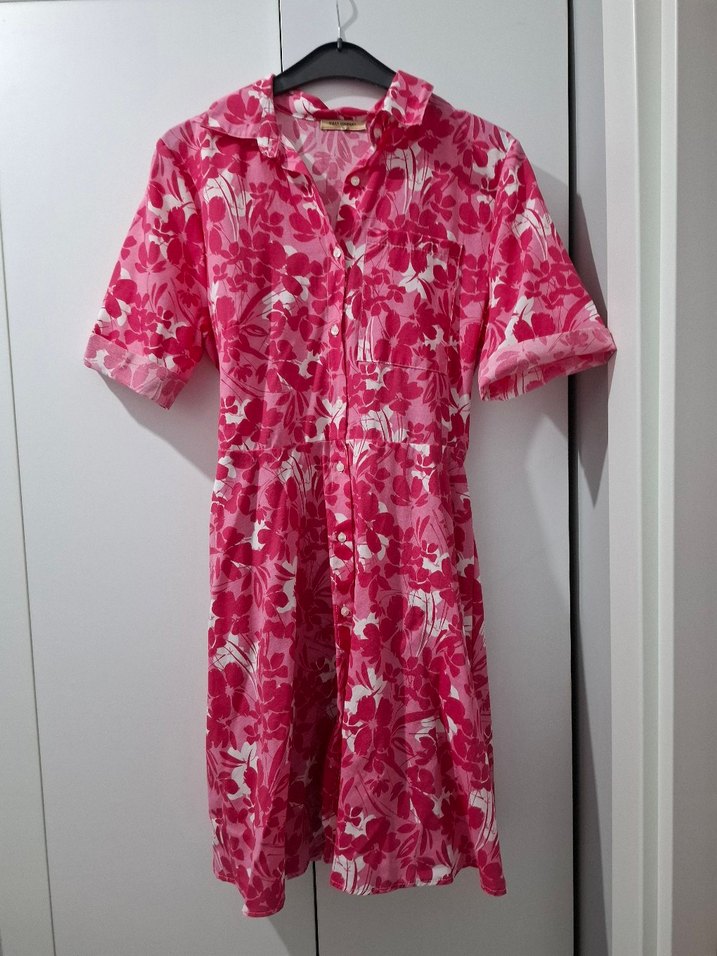 Markası First Company'dir. Pembe renkli, yakalı ve kısa kollu elbise, düğmeli ve bol kesimdir. Sentetik kumaştan olup batik desenlidir, bohem tarzı yansıtır.