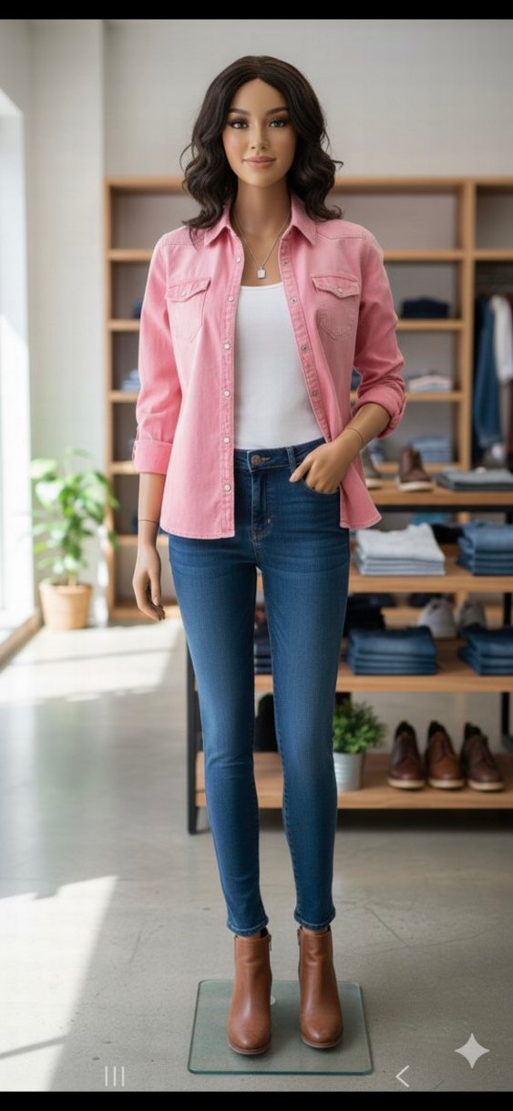 Pembe Düğmeli Denim Kadın Gömlek