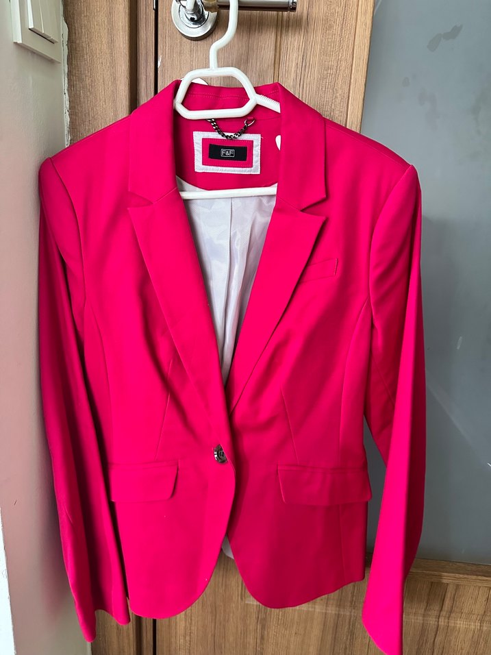 Fuşya Takım Elbise Havuç pantolon ve ceketi ile birlikte muhteşem bir takım elbise. Çok özel bir renk zayıflarım diye aldım ama maalesef askıda bekliyor . Ofis ve çalışma alanlarında çok şık takım