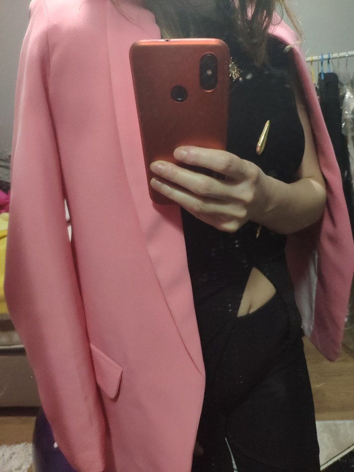 Kadınlar için parlak pembe renkte, düğmeli ve kesimli yakalı blazer ceket. Uzun kollu, normal kesim ve midi boyda, ipeksi kumaştan üretilmiştir. Desensiz, ofis için uygun şık bir parça.✨