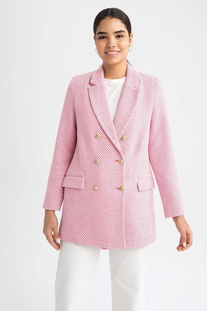 Ürün etiketli şekilde dolapta. Hiçbir kullanım olmadı. şuan internet satış fiyatı 1000 tl. Pastel pembe renkte, pamuk kumaştan yapılmış, düğmeli ve çentikli yakalı kadın blazer ceketi. Normal kesim, uzun kollu ve midi boy, ofis için uygun.