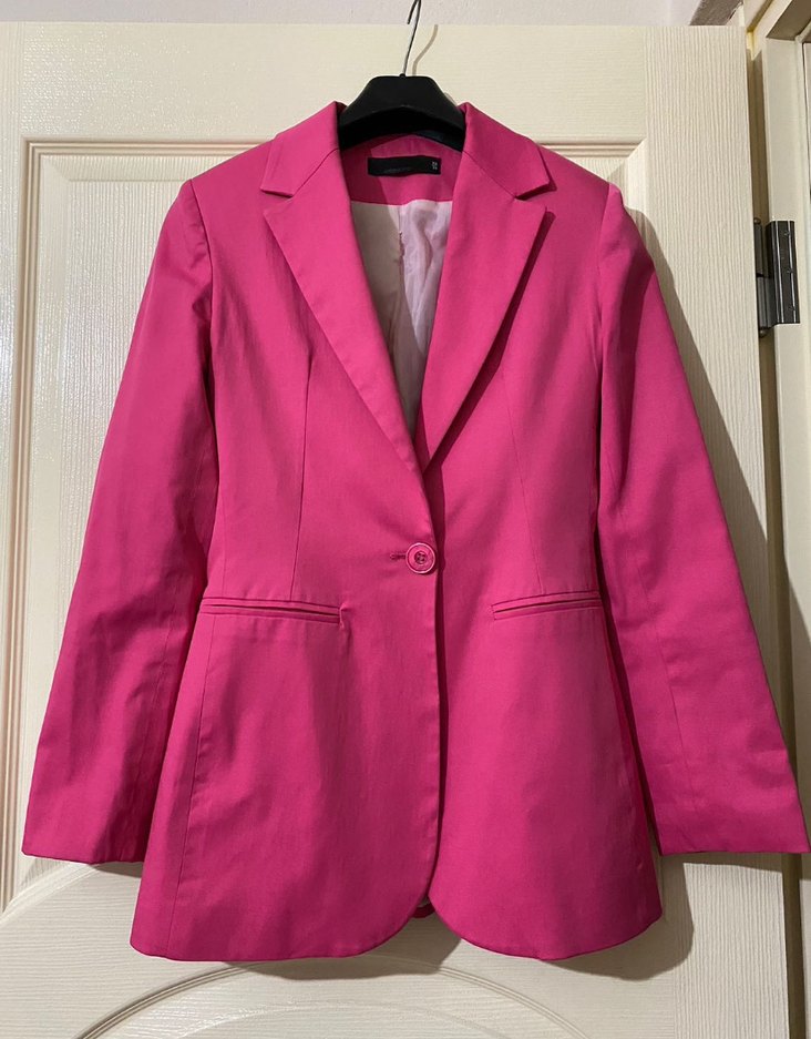 Pembe renkli, düğmeli, normal uzunlukta kadın blazer ceket. Notch yaka ve uzun kolludur, ofis için uygundur. Trendy casual tarzda, sentetik kumaştan üretilmiştir. Pembe blazer saten ceket Giyilmiş ve iç astarı yıpranmış bir üründür Astarında sökükler mevcut ona göre alım yapın lütfen Dışında bir şey yok Bana artık olmadığı için satıyorum
