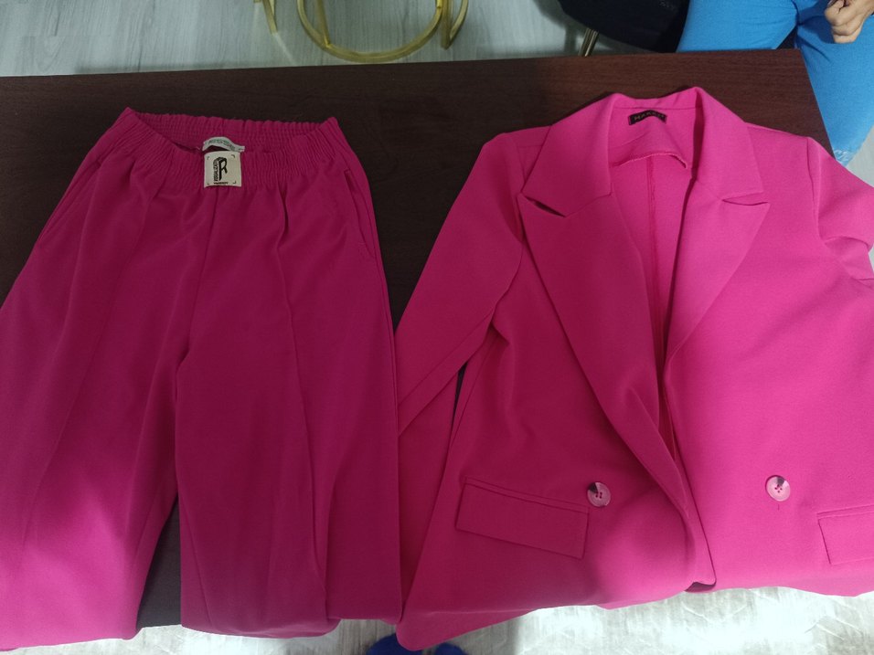 Pembe renkli kadın blazer ceket, kesik yaka ve düğmeli kapamalı. Normal kesim, askılı kollu ve midi boyda, yumuşak ve sıcak kumaştan üretilmiştir. Günlük kullanım için uygundur. rengi çok tatlı bir pembe ikiside standart beden 36 /42 beden uyumlu ben 62 kiloyla giydim tam oldu ceket zaten efsane .alıcısına hayırlı olsun hiç bir sorunu yok