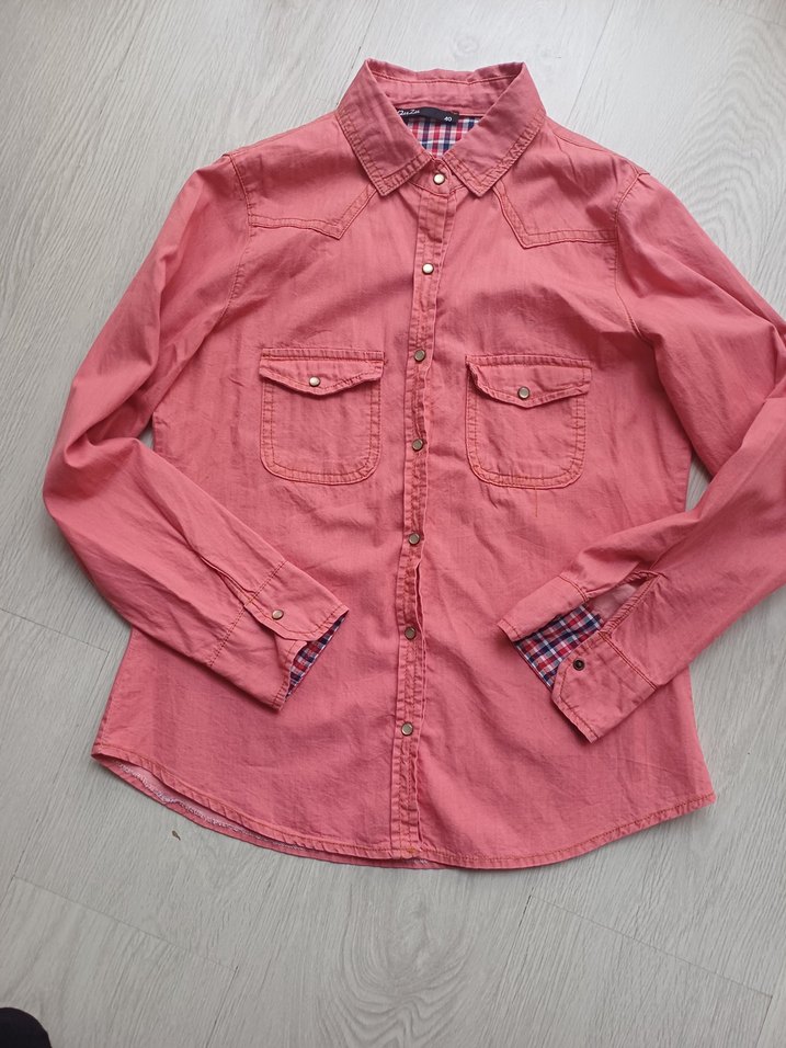 Pembe keten gömlek, uzun kollu ve kesik yakalıdır. Rahat bir görünüm için bol kesimdir. Düğmeli manşetler ve ön cepleri vardır. spor keten defosuz gömlek