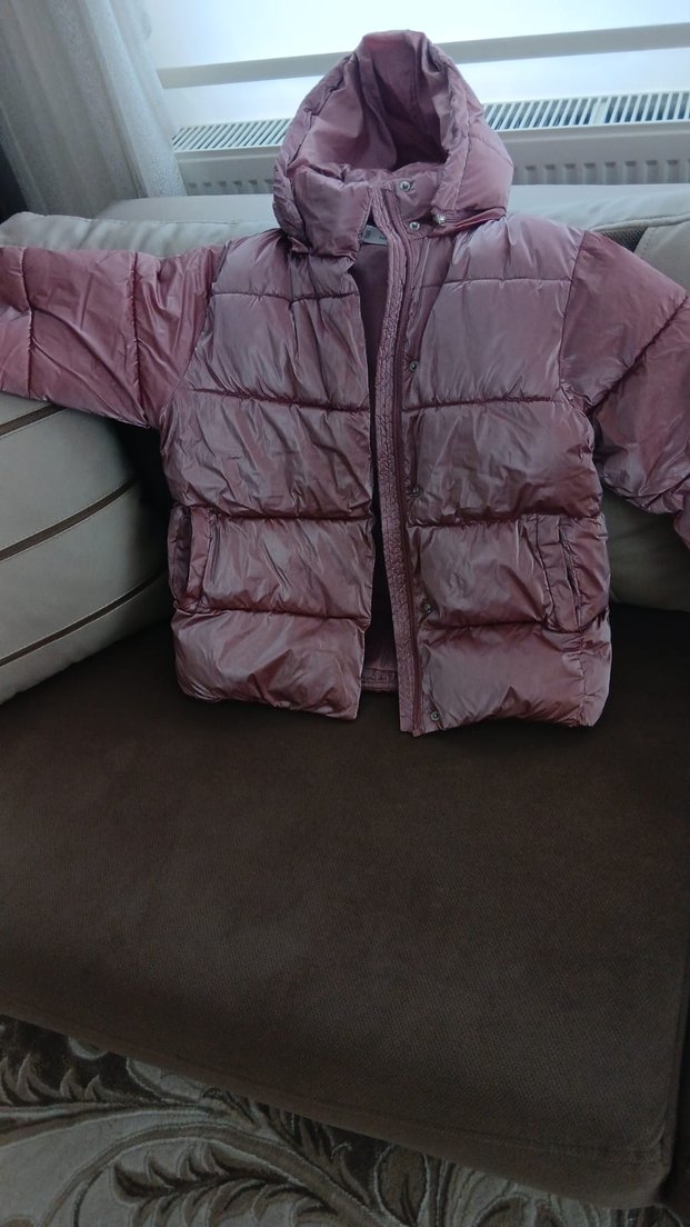 Pembe renkli, düğmeli, uzun kollu ve normal boyda çocuk kışlık mont. Sıcak tutan yumuşak kumaş ve sade tasarıma sahiptir. Günlük kullanıma uygundur. Fermuarında sorun var uyguna satıyorum o yüzden
