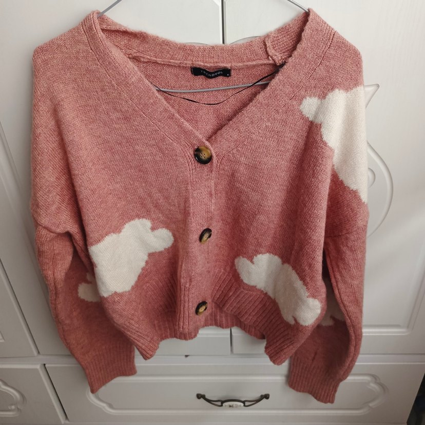 Pembe renkli düğmeli triko hırka, rahat kesimi ve uzun kollarıyla günlük kullanıma uygundur. Rahat ve şık bir görünüm sunar.