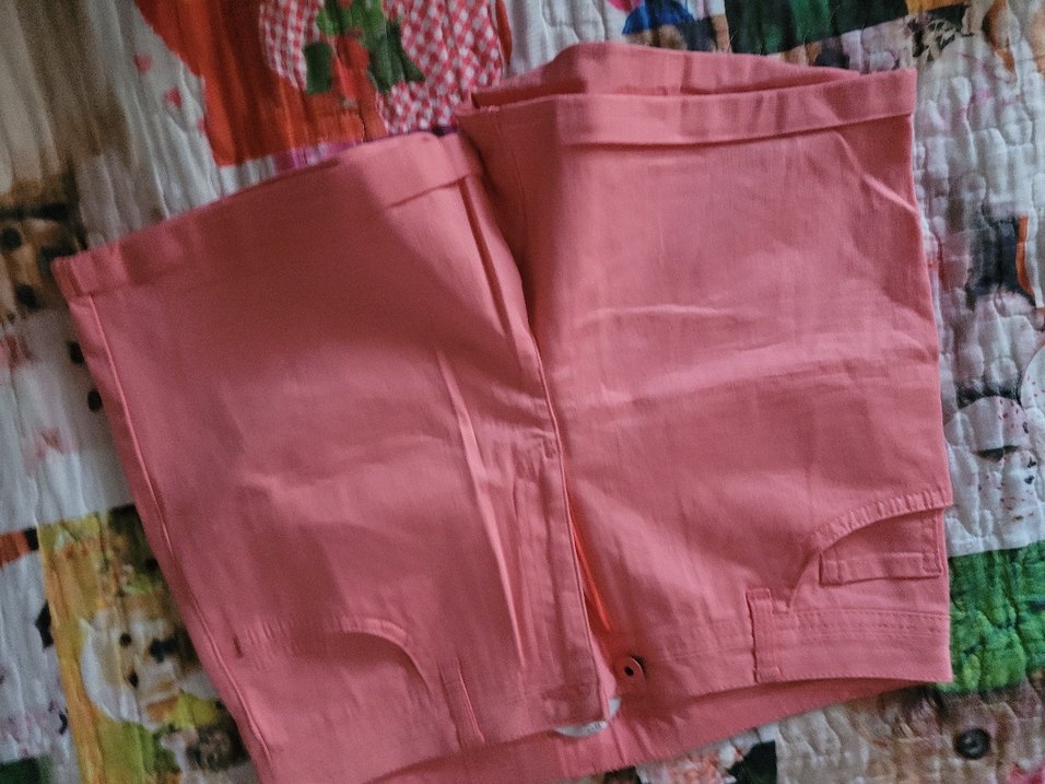 Düğmeli, midi boy, pembe keten kumaştan bol kesim pantolon. Parlak ve sade yapısıyla günlük rahat kullanıma uygundur.
