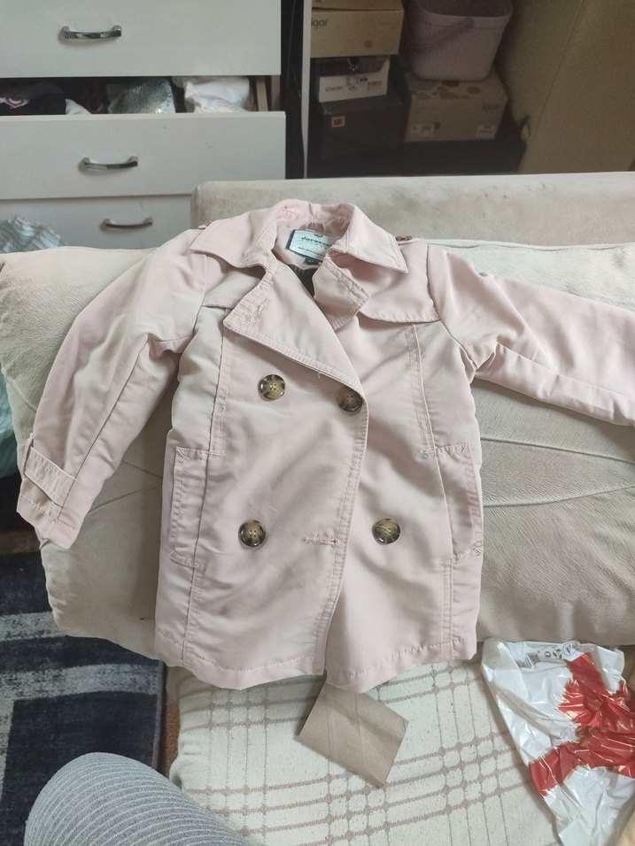 Pembe pastel renk, düğmeli ve notlu yaka detaylı kız çocuk ceketi. Sentetik kumaştan üretilmiş, rahat ve bol kesim bir tasarıma sahip. TERTEMIZ KULLANILMISTIR
