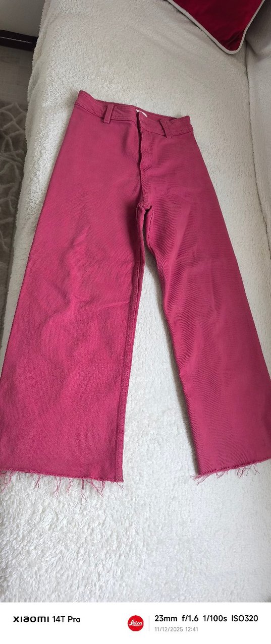 Düğmeli, parlak pembe renkte, sentetik kumaştan yapılmış kız cocukpantolon. Normal boy, regular fit ve günlük kullanım için uygundur. ✨