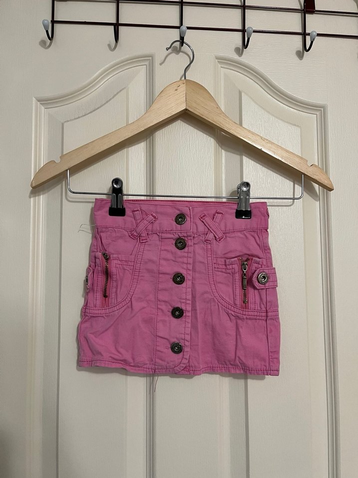 Pembe Düğmeli Kız Denim Etek
