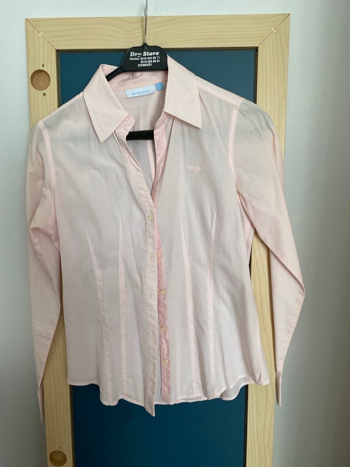 Pembe Düğmeli Pamuklu Kadın Gömlek