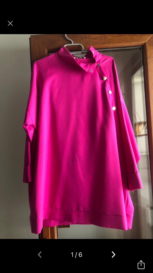 Pembe renkte, düğmeli, yüksek yakalı ve uzun kollu salaş ikili takım ve günlük kullanıma uygundur.