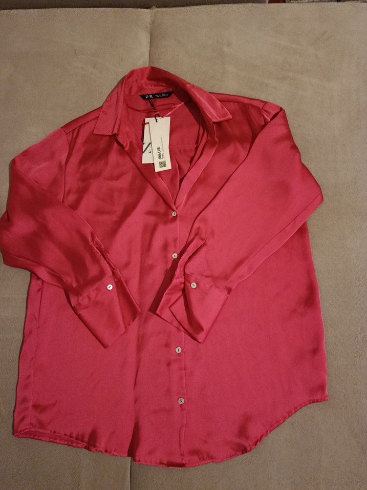 pembe saten kumaştan, uzun kollu, düğmeli ve notched lapel yakalı kadın gömleği. Rahat loose fit kesim ve midi boyda, trend sokak stili için uygun. ❤️