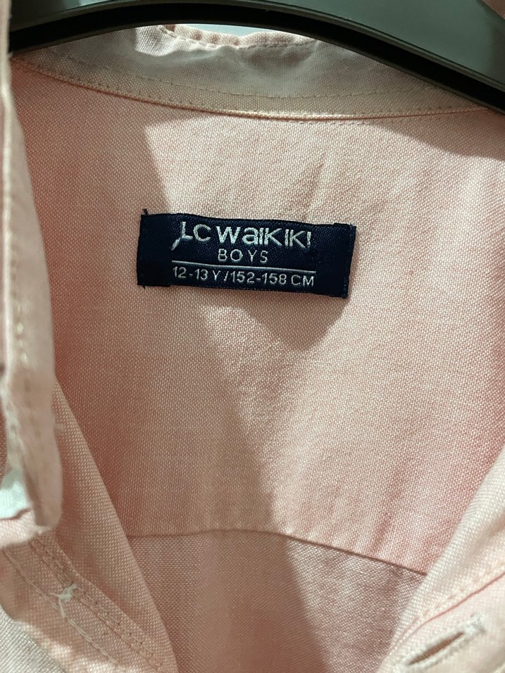 Pembe renkli, düğmeli, uzun kollu ve çıtçıtlı yakaya sahip erkek gömleği. Sentetik kumaştan, rahat kesim ve baskılı desenlidir. Günlük sokak stili için uygundur.