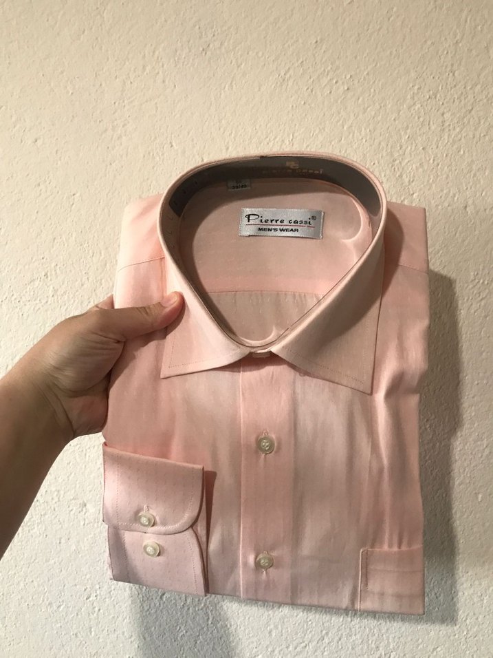 Pembe Düğmeli Uzun Kollu Erkek Gömlek