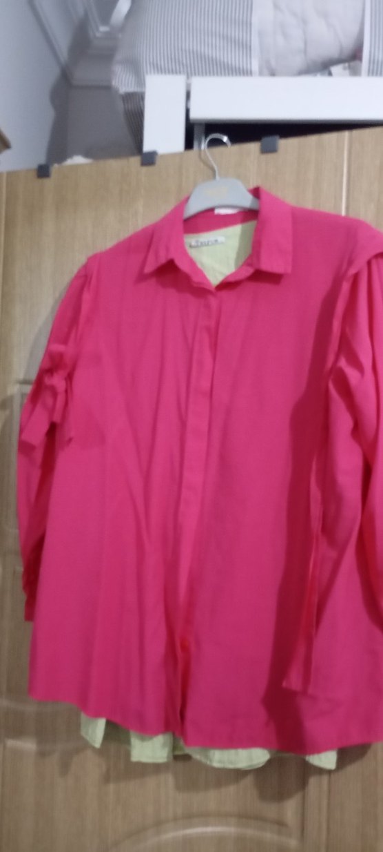 Pembe renkli, düğmeli ve yakalı uzun kollu gömlek. Rahat kesimi ve yumuşak sentetik kumaşıyla sade ve günlük kullanıma uygundur.