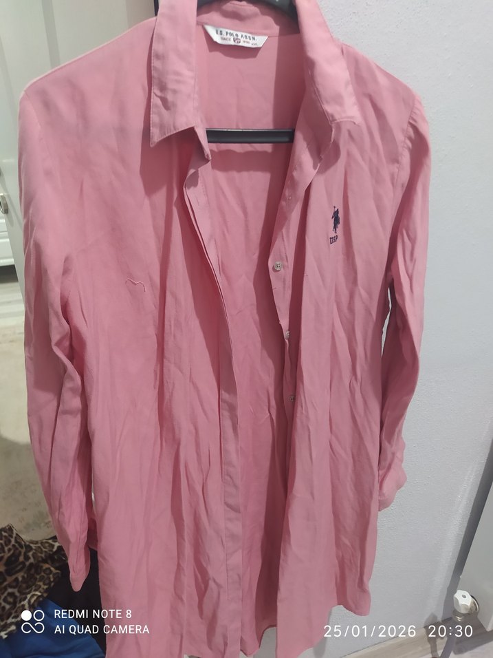 Pembe Düğmeli Uzun Kollu Kadın Gömlek