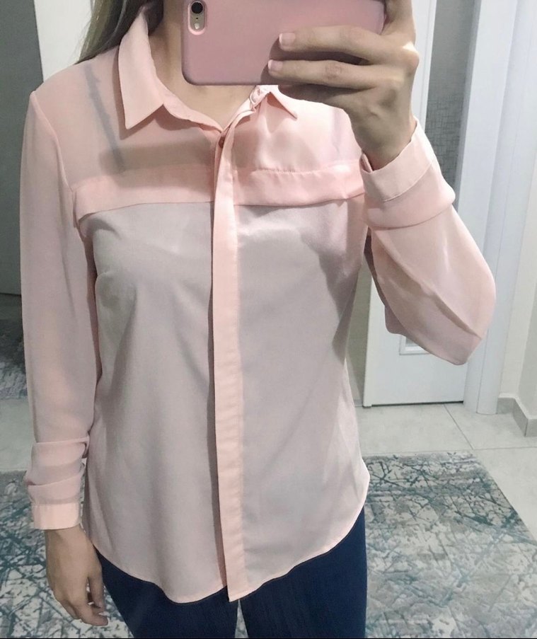 Pembe uzun kollu gömlek, yakalı ve düğmeli ön detaylıdır. Yumuşak sentetik kumaştan, ofis ve günlük sokak stiline uygundur.