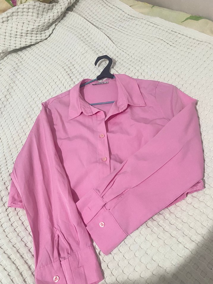 Pembe keten gömlek, düğmeli, uzun kollu ve yakalıdır. Rahat kesimi ve sade pastel tasarımıyla günlük kullanıma uygundur. 2 kere giydim tertemiz bir sorunu yoktur.