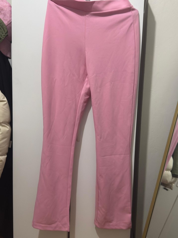 Pembe Düz Kesim İspanyol paçaKadın Kumaş Pantolon/esortman