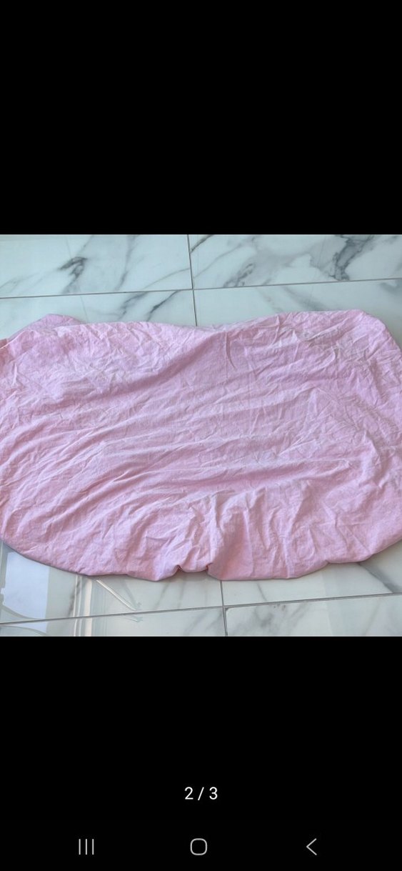 Yumuşak kumaştan yapılmış, pastel pembe düz lastikli çarşaf, yatağa sağlam oturması için elastik kenarlara sahiptir.